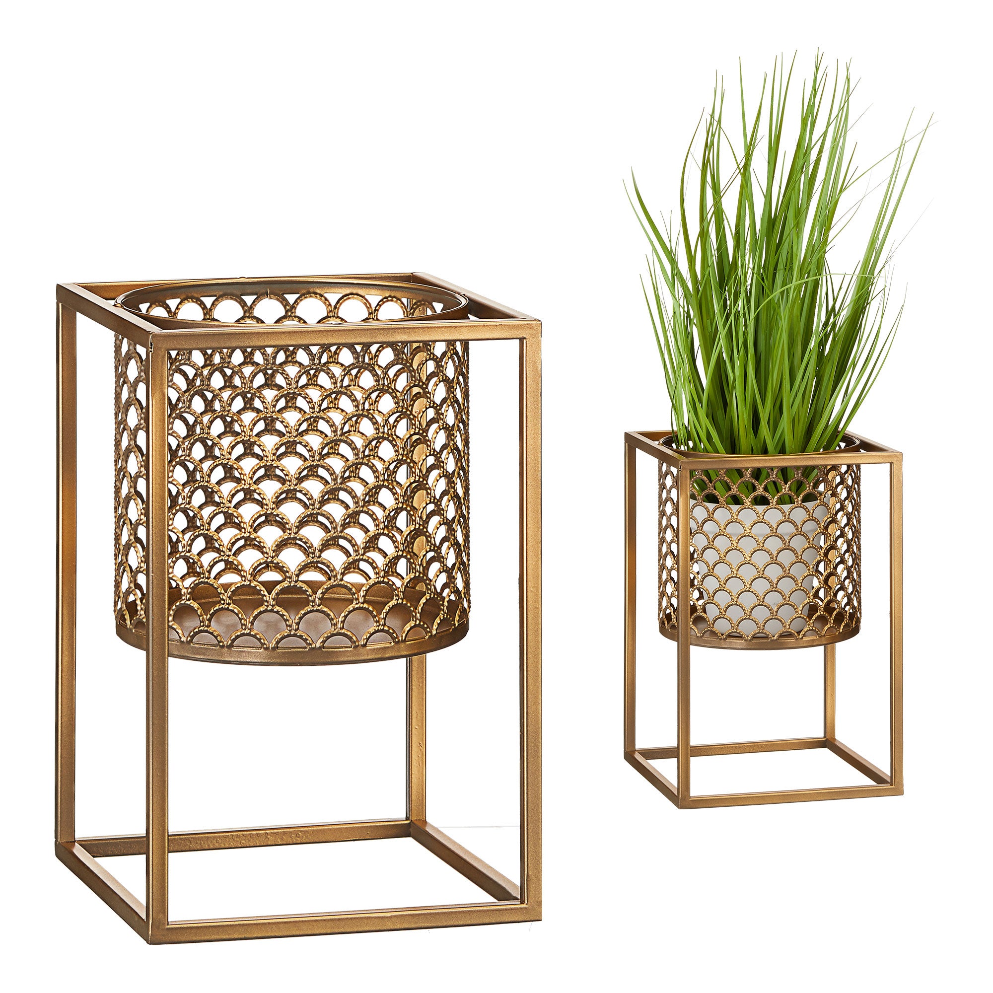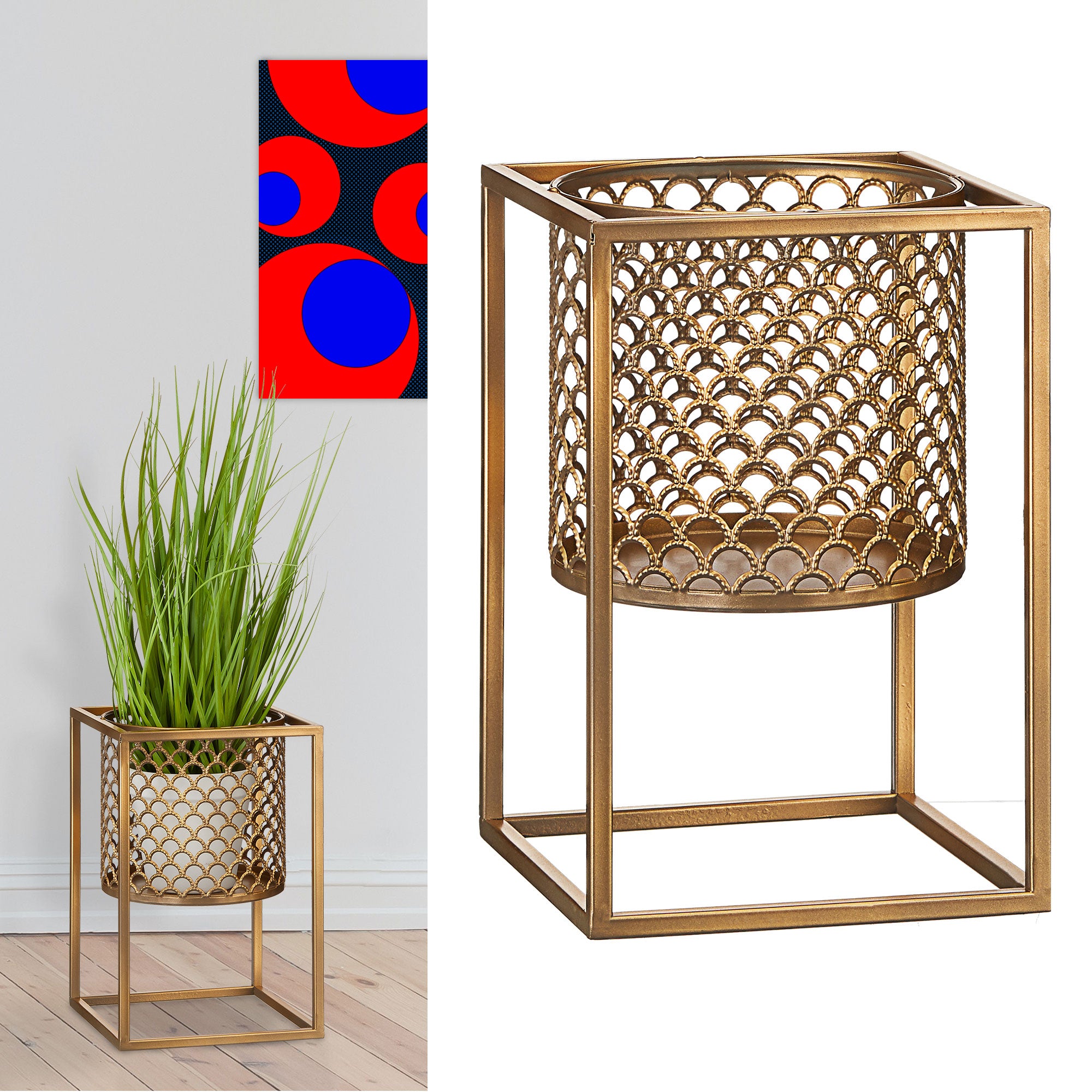 Pflanztopf quadratischer Ständer gold H25 cm Ø17 cm Blumentopf Blumenständer
