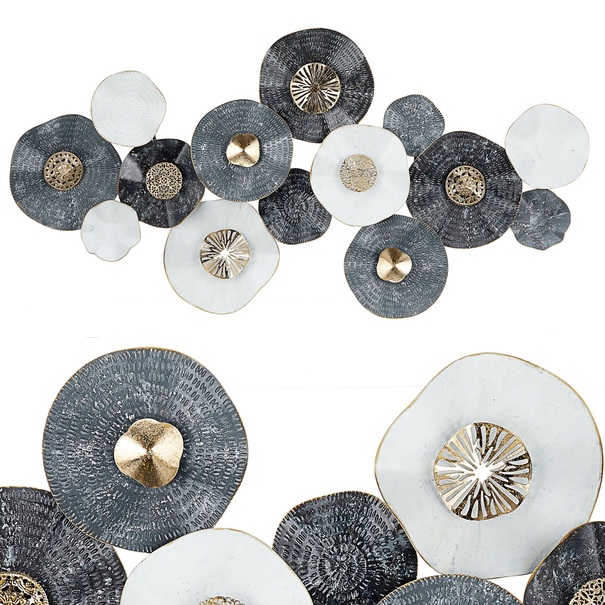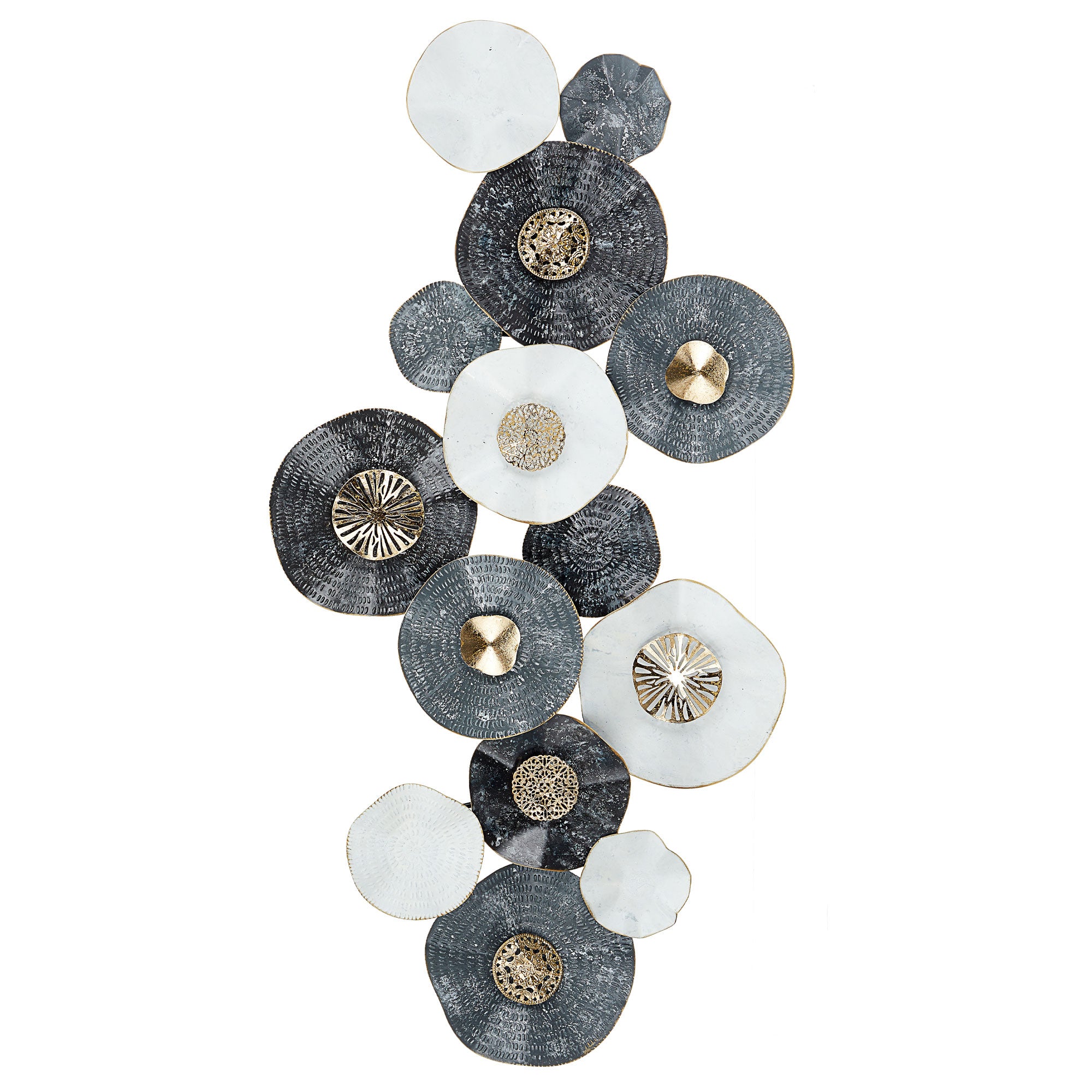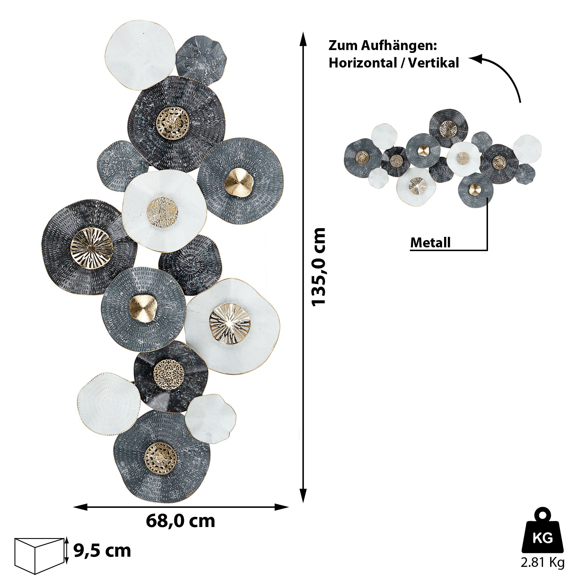 Wanddeko aus Metall Wandbild Wandskupltur Blüten Blumen blau/gold B68xH135cm