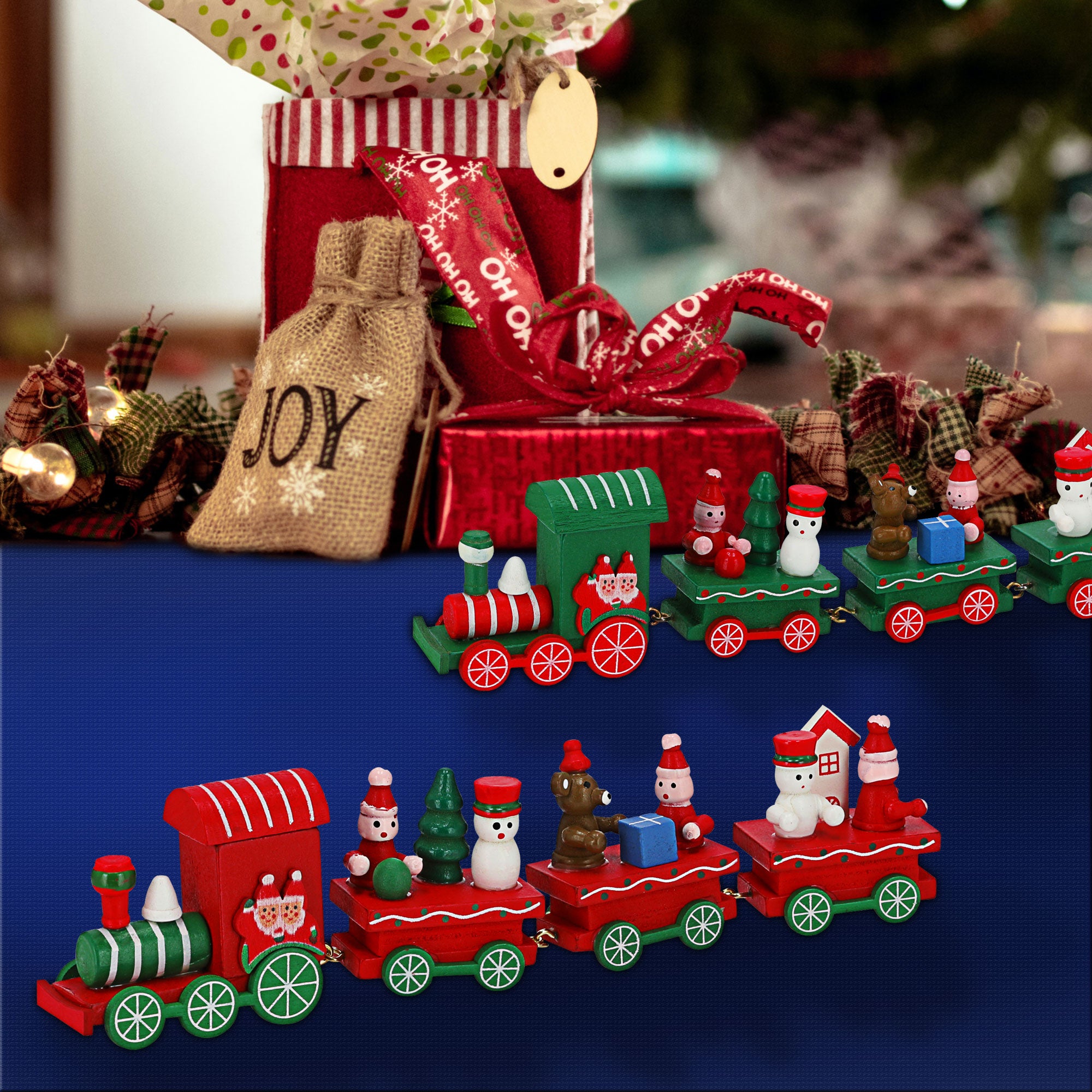 2er Set Holzzug 4tlg Weihnachtseisenbahn | ||||||||||||||