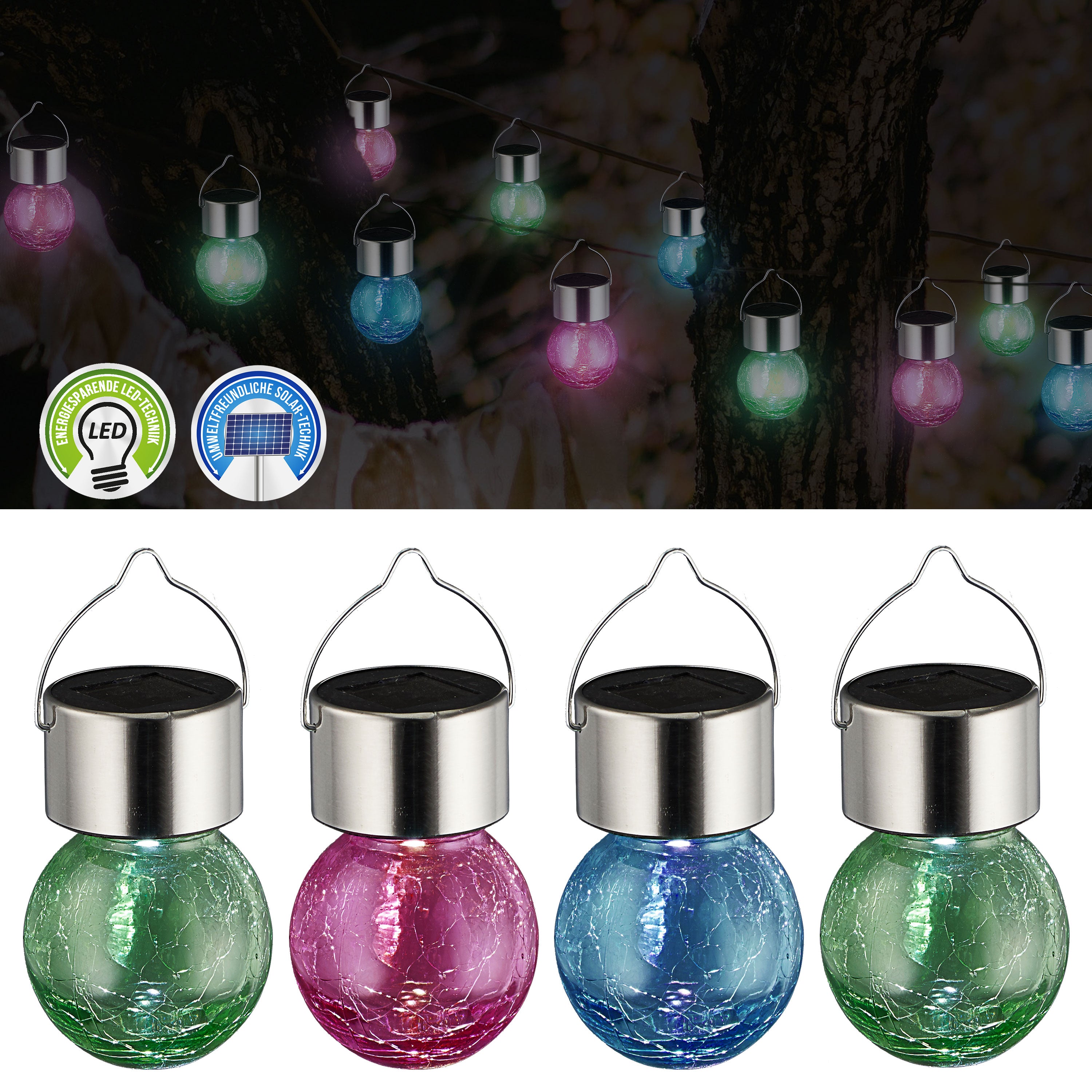 4er Set Bunte LED Solarleuchte "Crackle" zum Hängen ca. 6x13cm Deko Solarlampe
