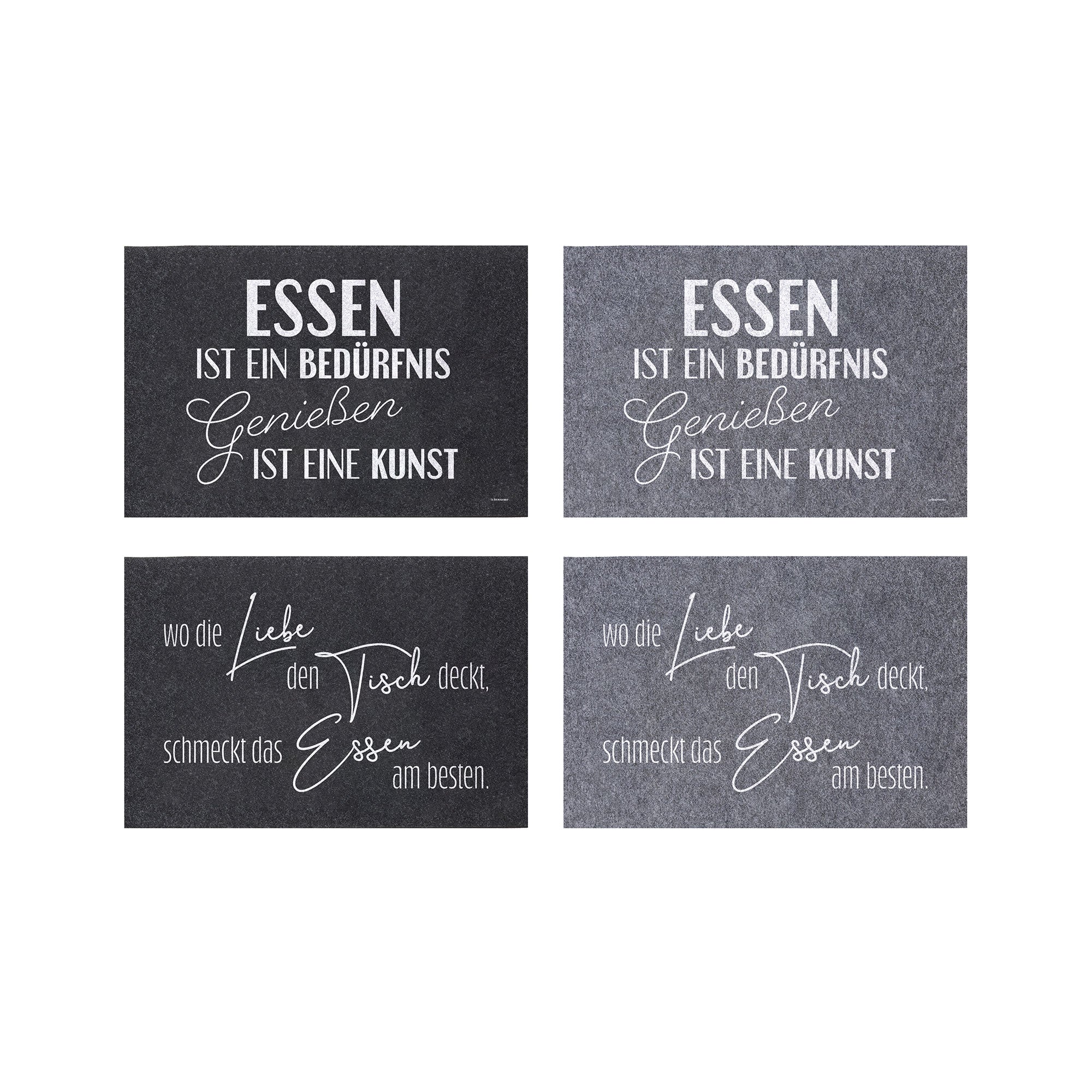 4er Set Tischset aus Filz mit Spruch, ca. 45x30cm in grau und anthrazit