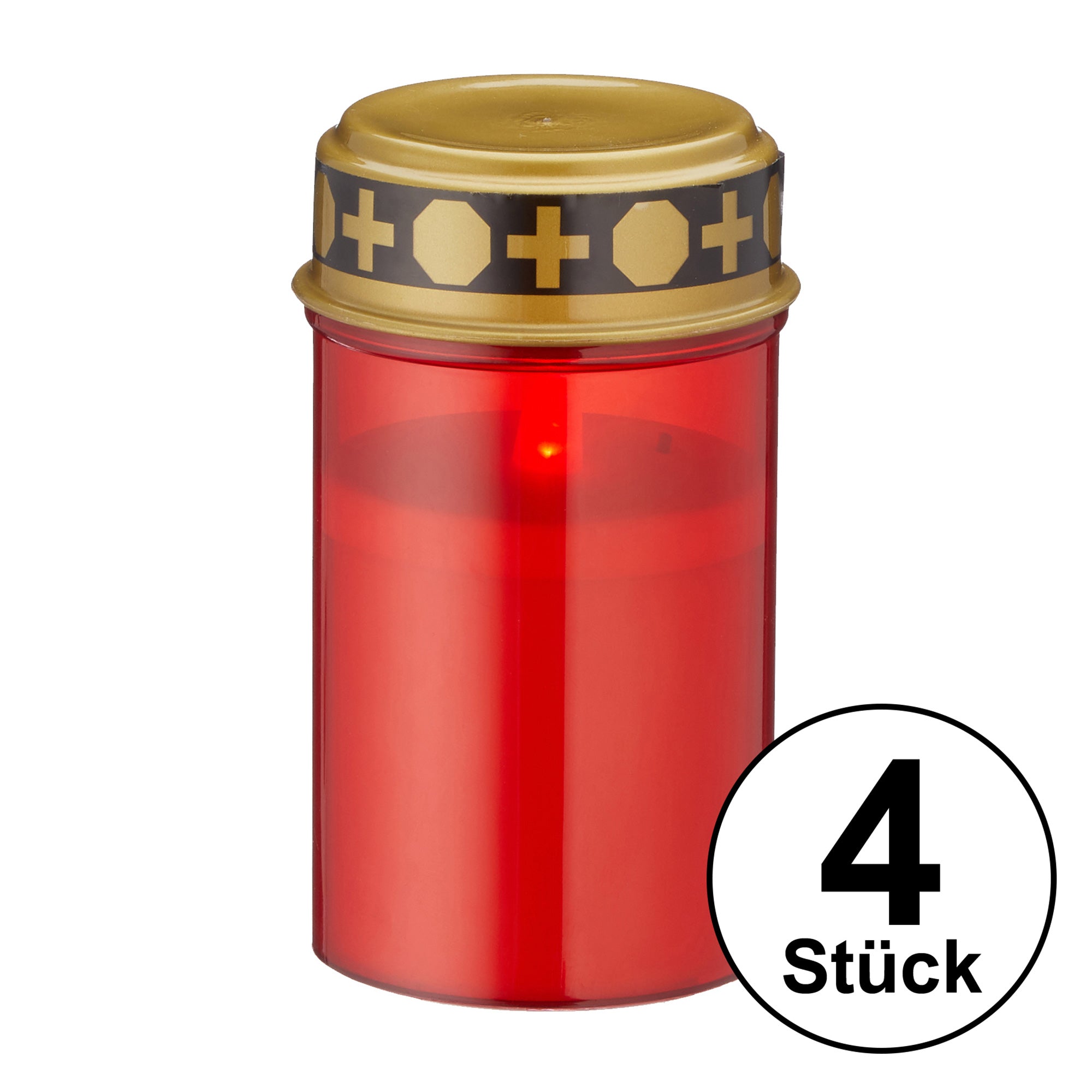 4x Batteriebetriebenes LED Grablicht rot Grabkerze Grableuchte Grabschmuck