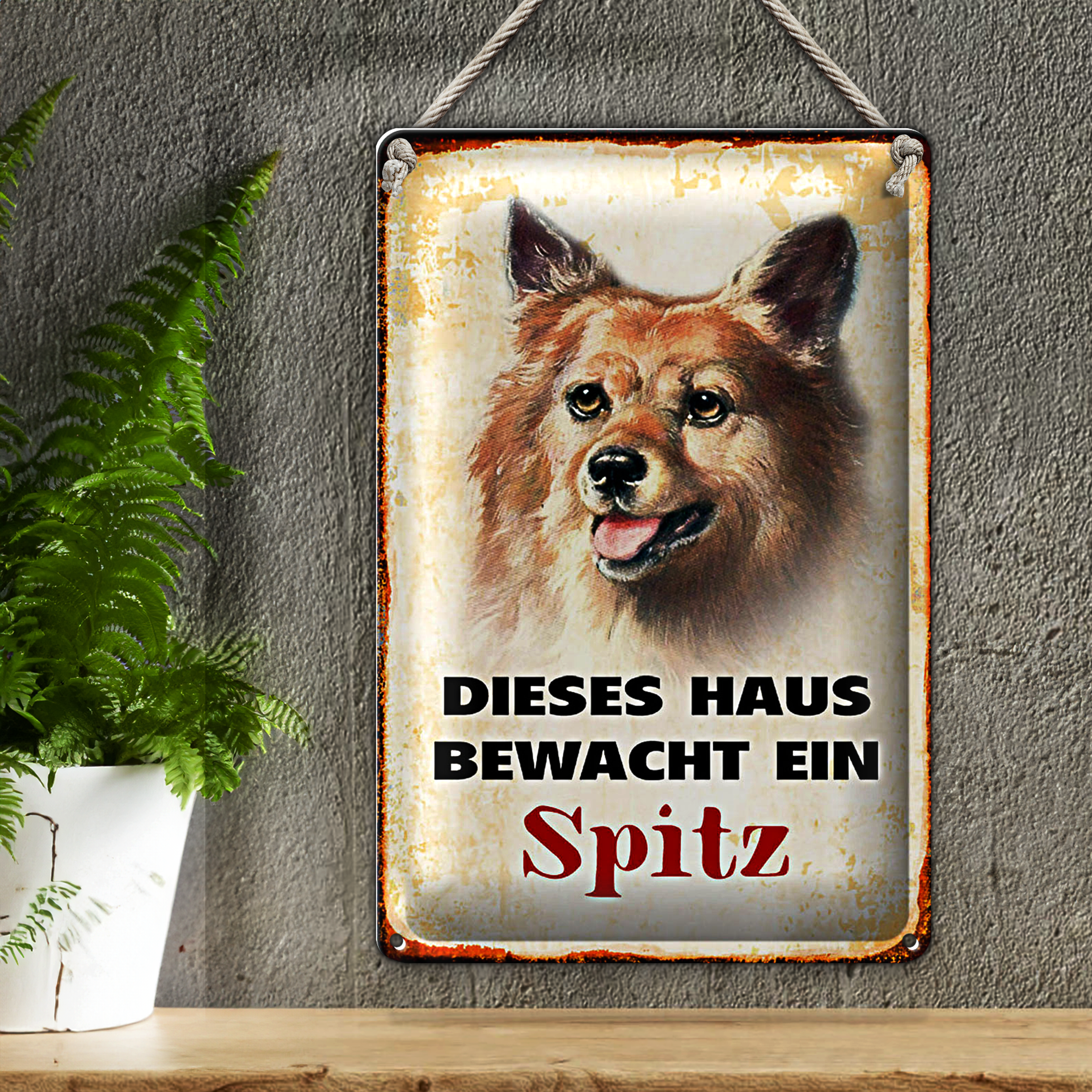 Blechschild Hund 20x30cm dieses Haus bewacht ein Spitz