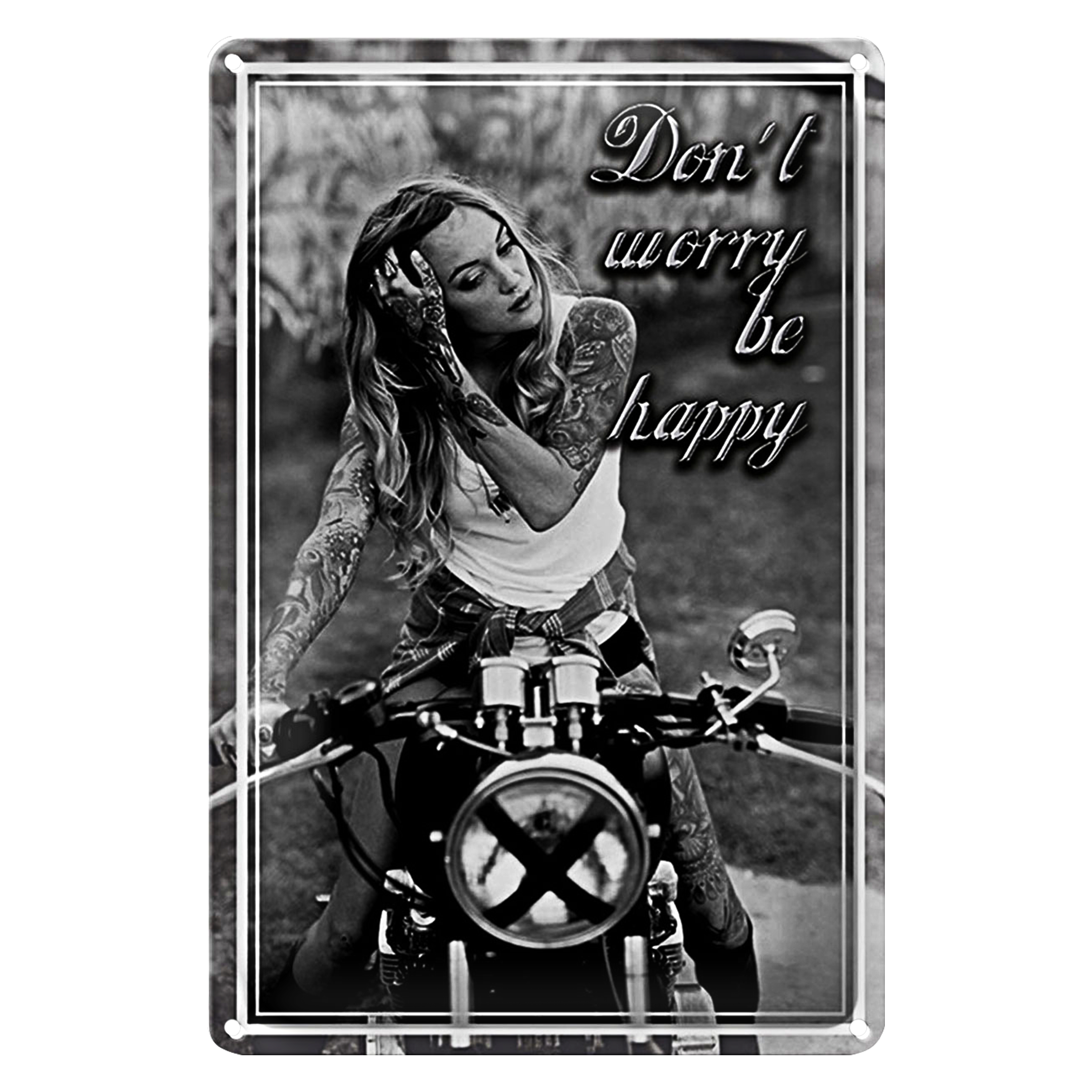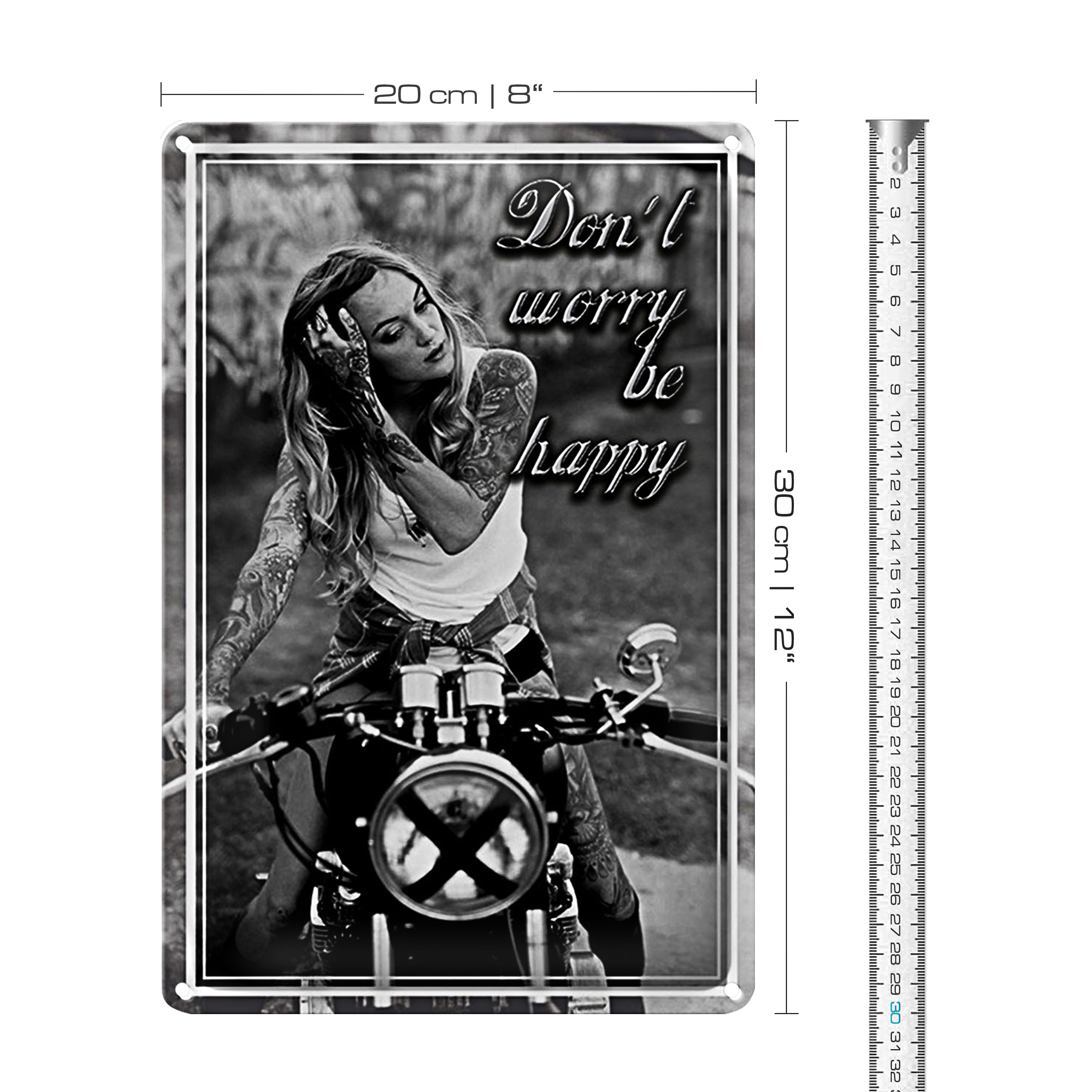 Blechschild Motorrad 20x30cm Bike Girl don´t worry happy