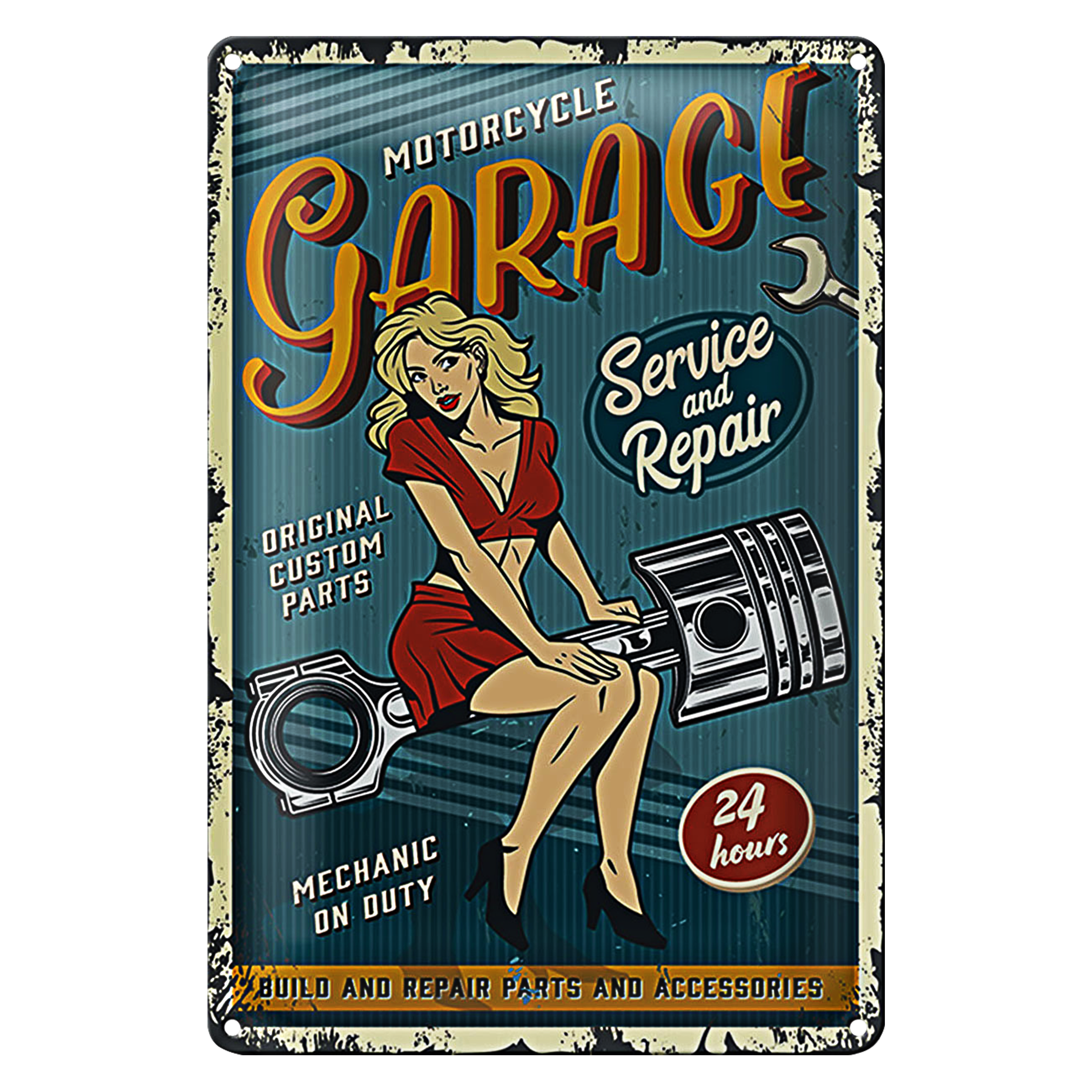 Blechschild Retro 20x30cm Pinup motorcycle Garage 24service