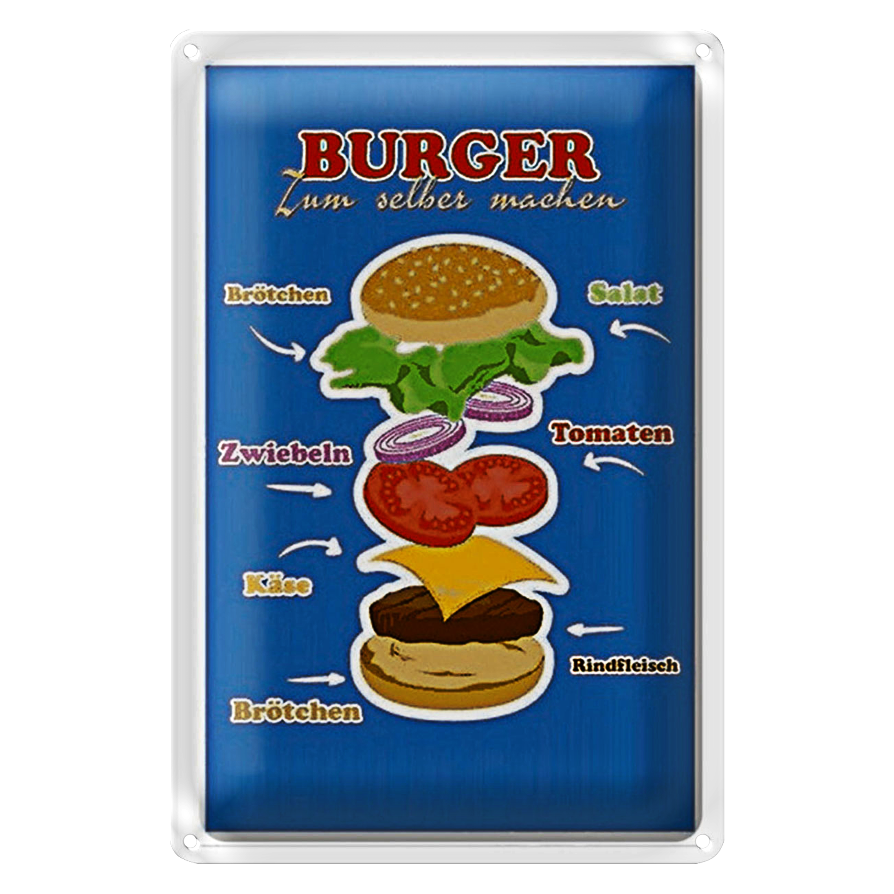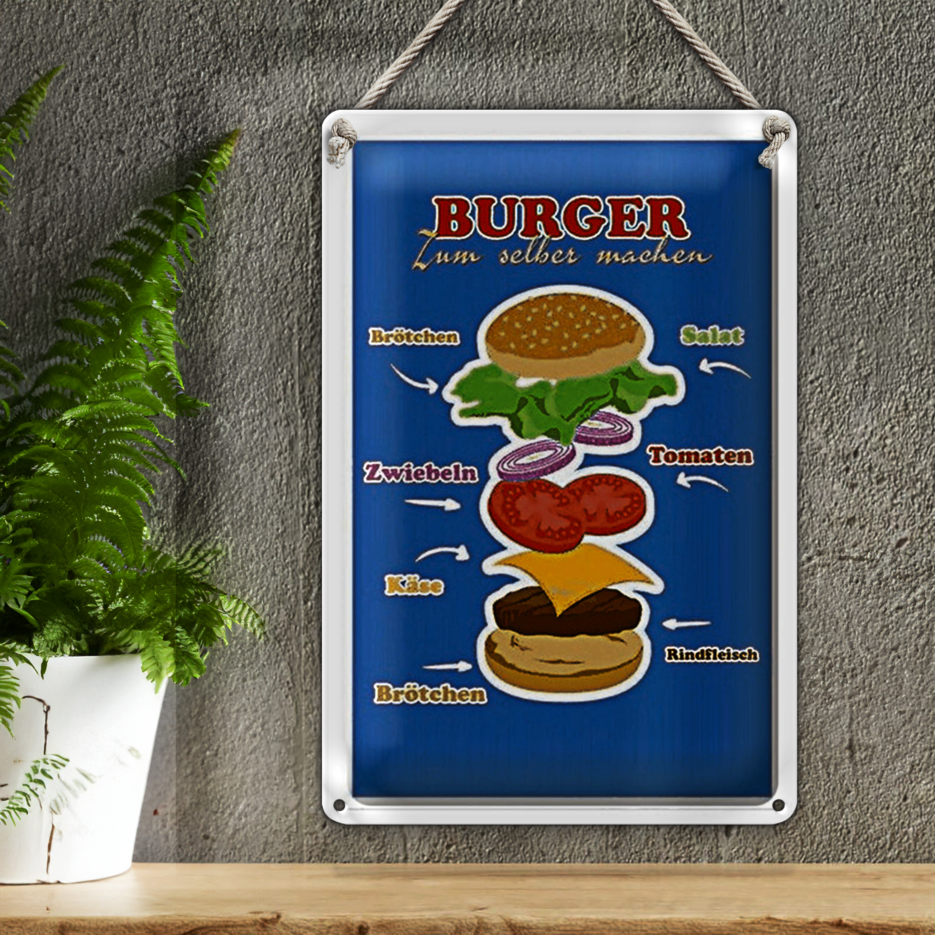 Blechschild Rezept 20x30cm Burger zum selber machen