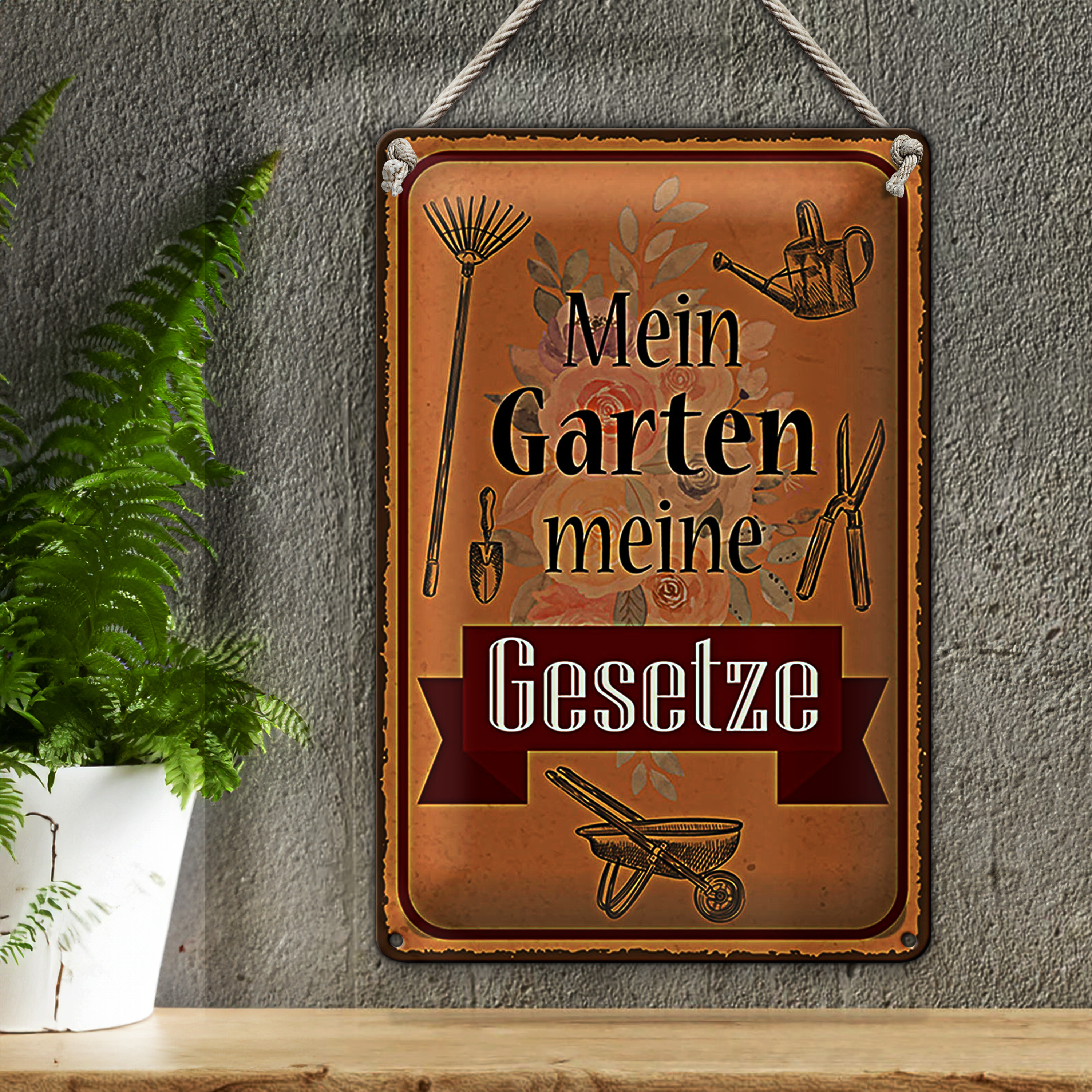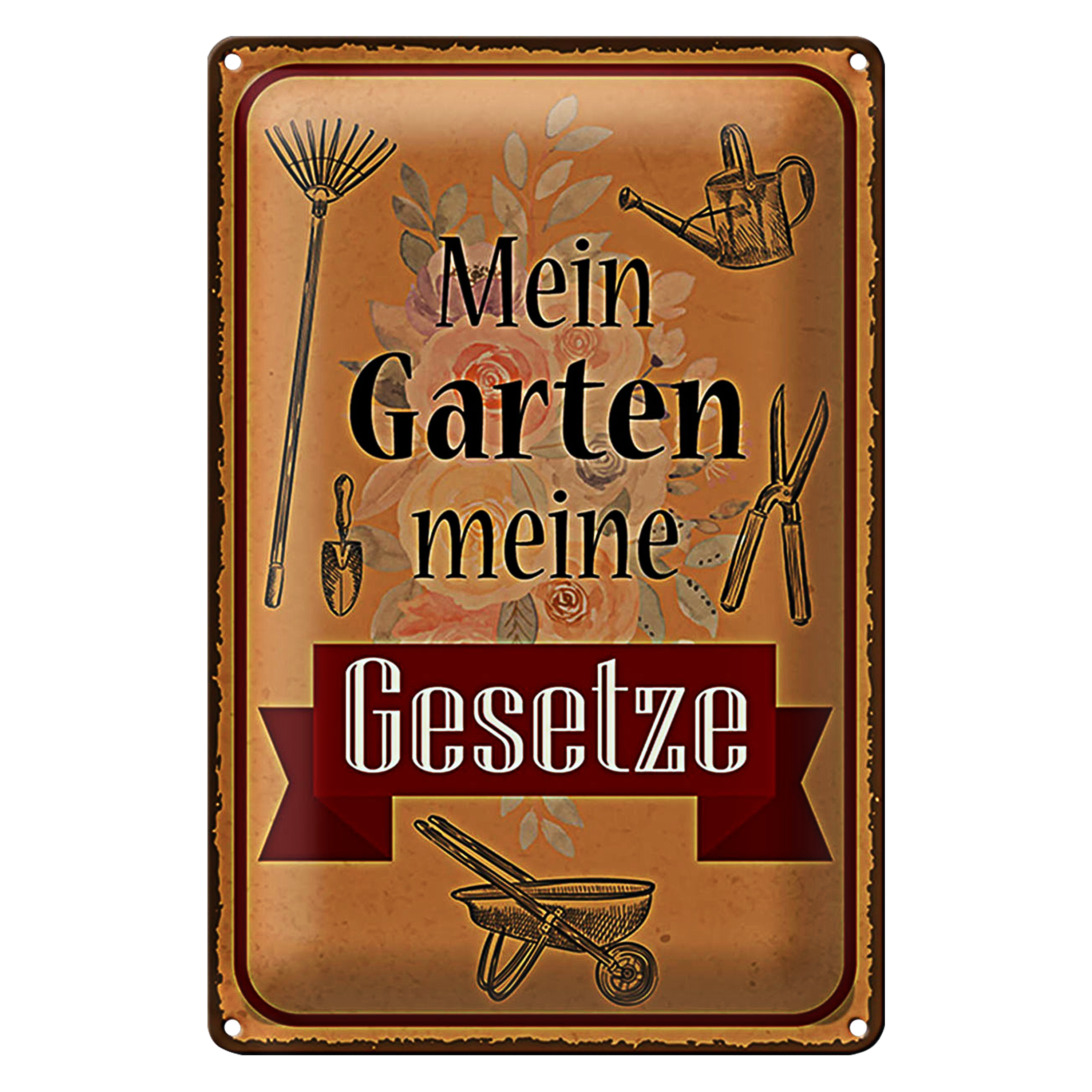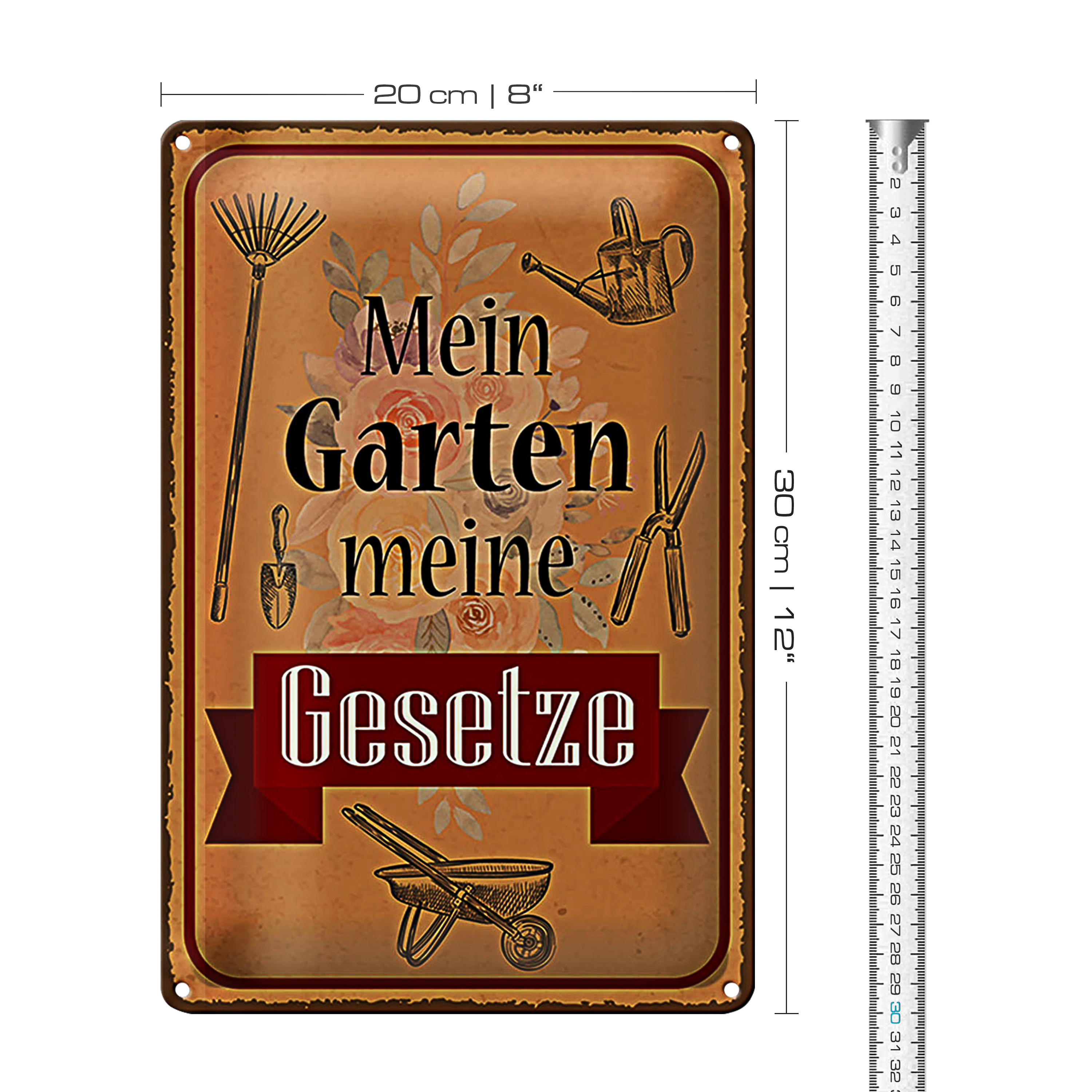 Blechschild Spruch 20x30cm mein Garten meine Gesetze