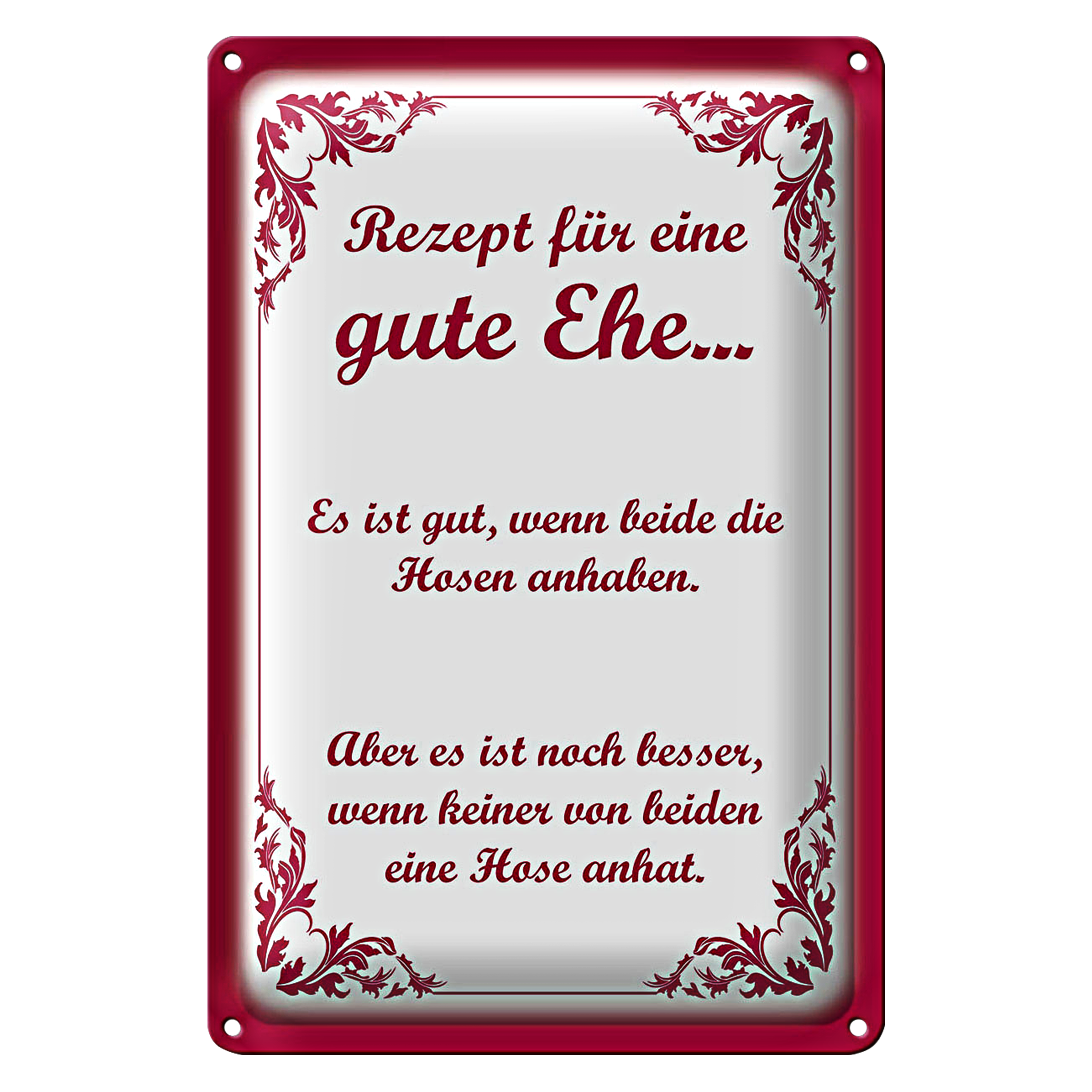 Blechschild Spruch 20x30cm Rezept für eine gute Ehe