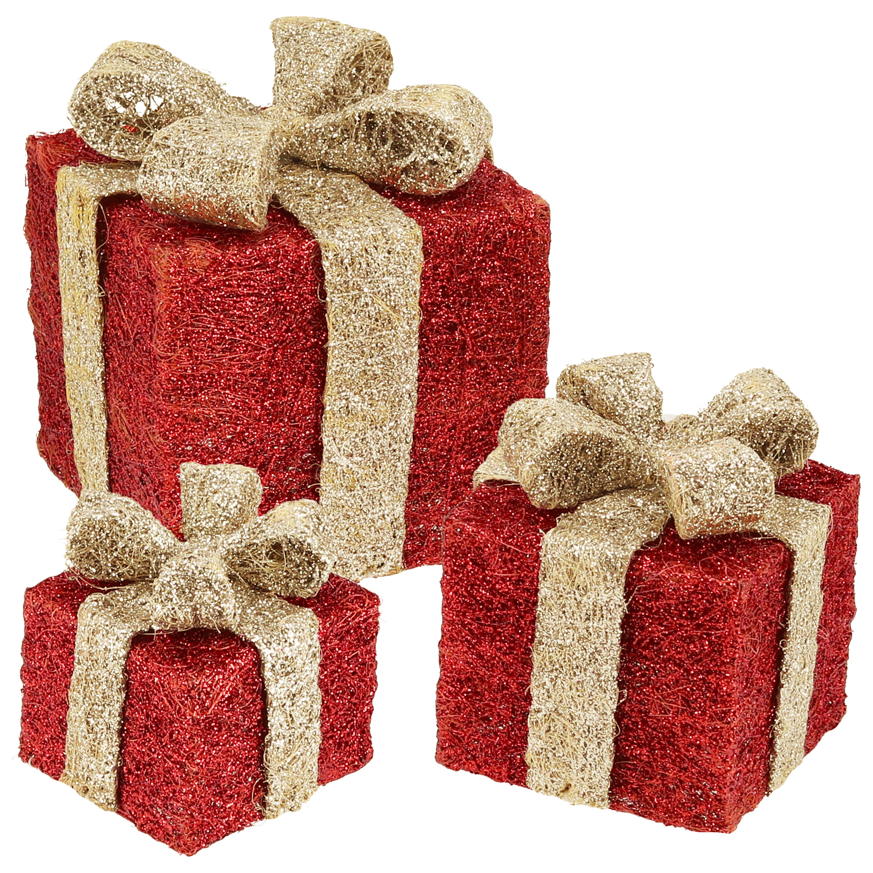 3er Set LED Geschenke in Rot/Gold | ||||||||||||||
