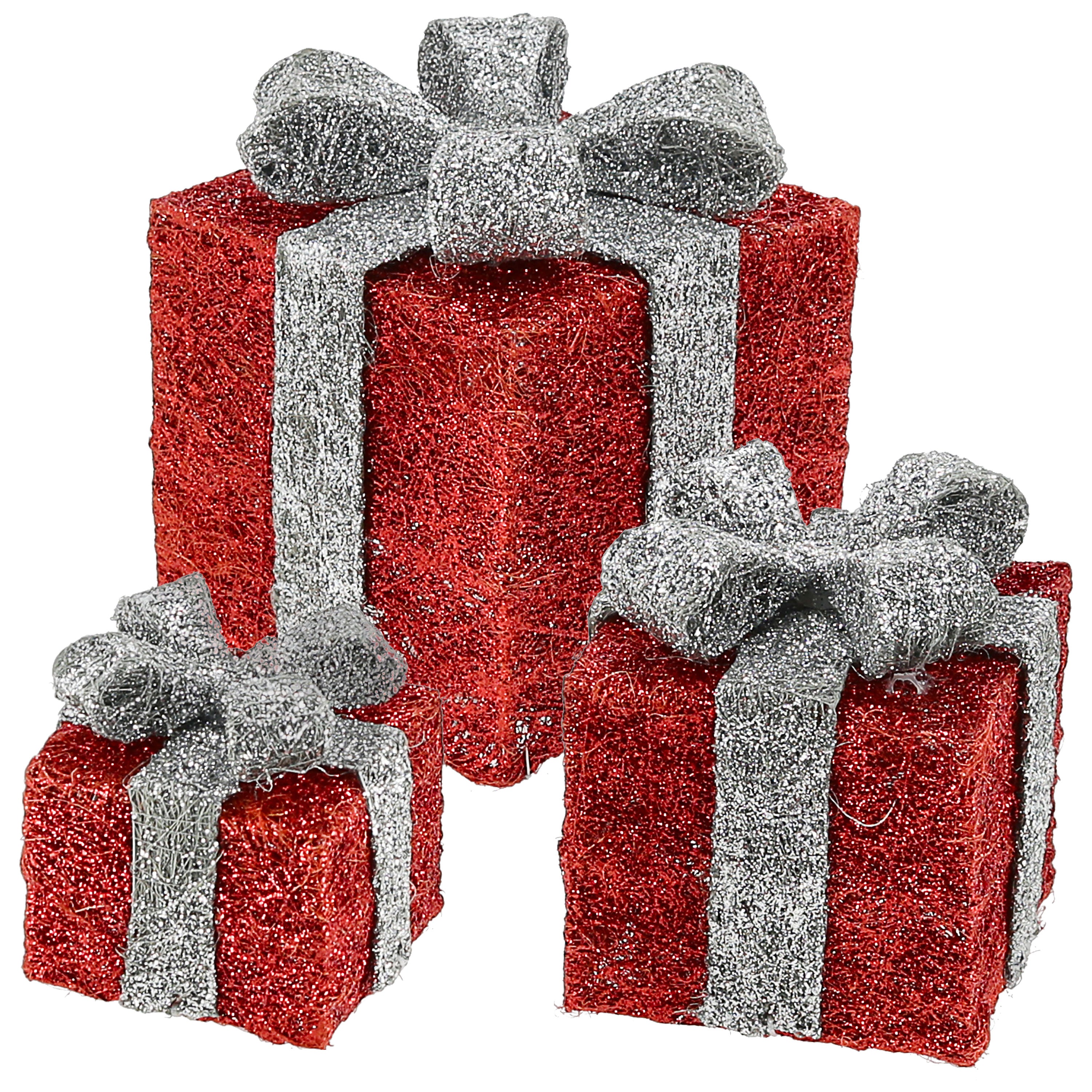 3er Set LED Geschenke in Rot/Silber | ||||||||||||||