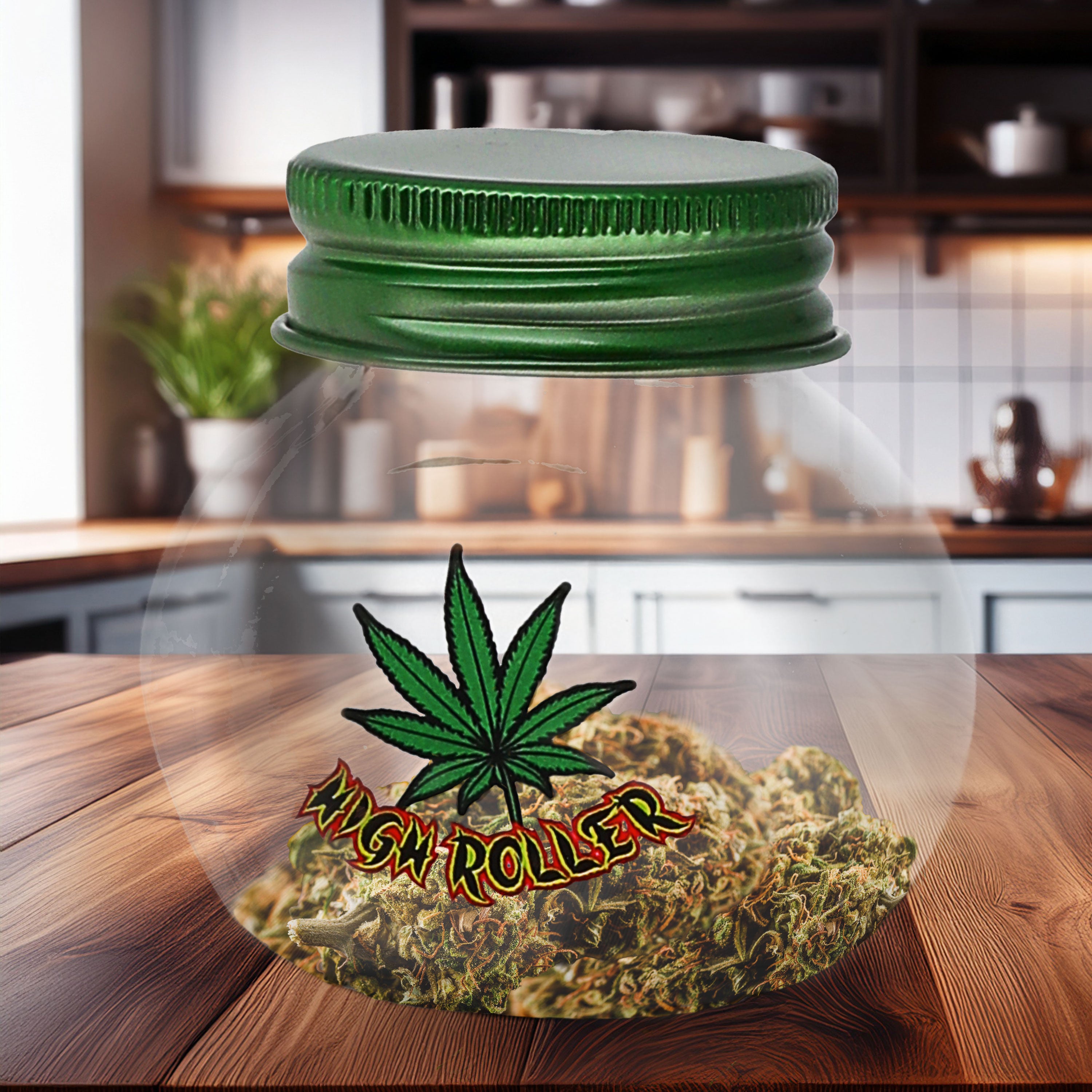 Vorratsglas 'Weed' 6er Set bauchig 50ml Glas Metall 4x5,5x4cm Aufbewahrungsglas Glasgefäß Schraubverschluss Cannabis-Design